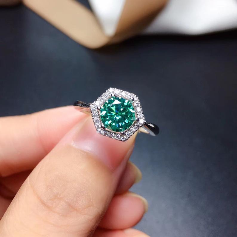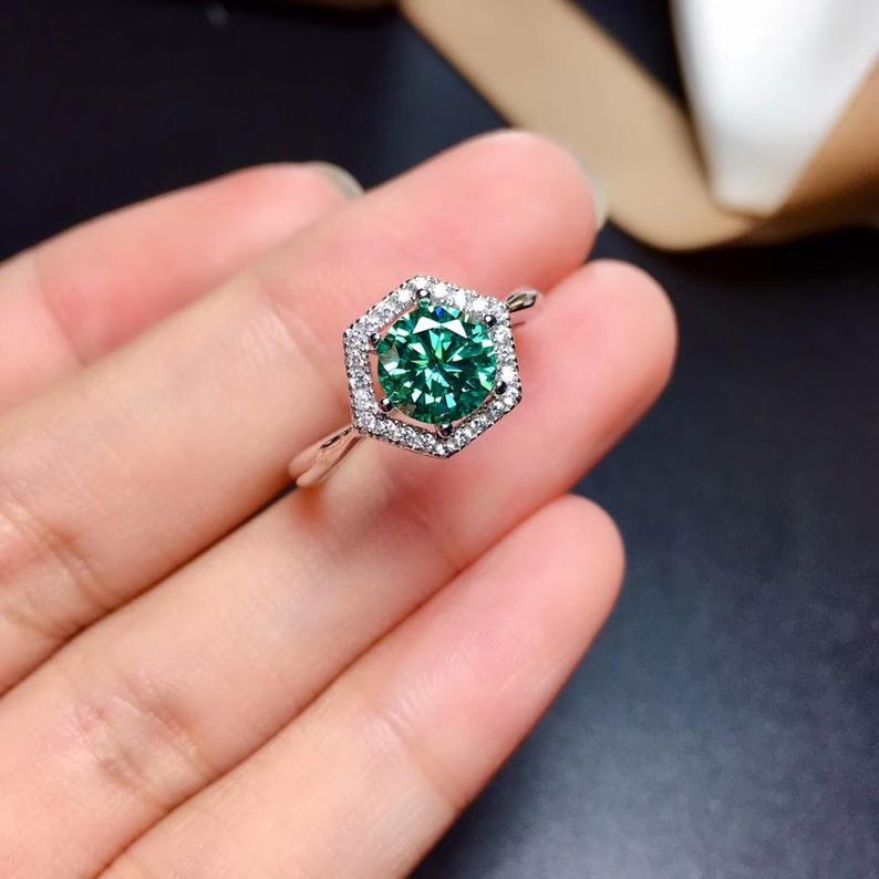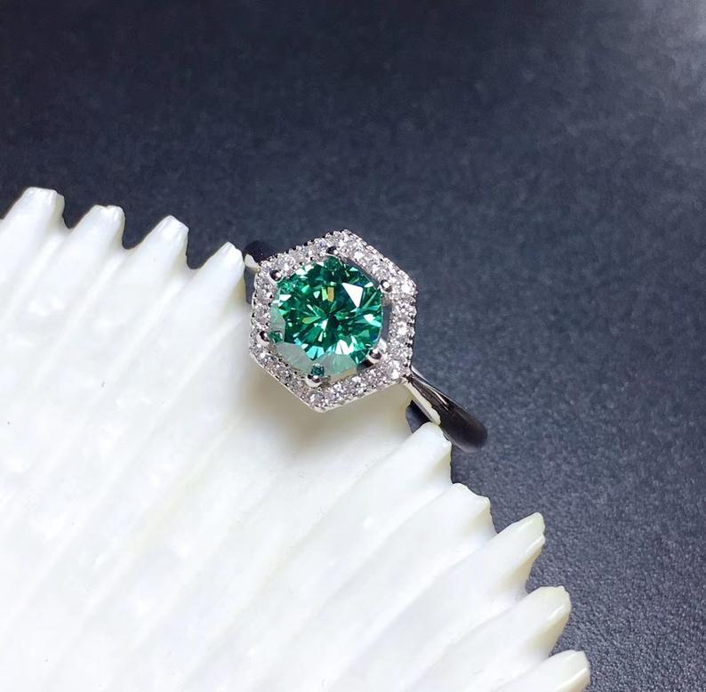 2 Carat Green Round Cut Diamond Engagement Ring For Women, Wedding Ring, Halo Ring