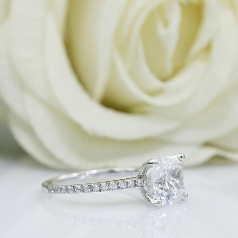 3 Carat Cushion Cut Diamond Engagement Ring for Women, Wedding Ring, Christmas Gifts
