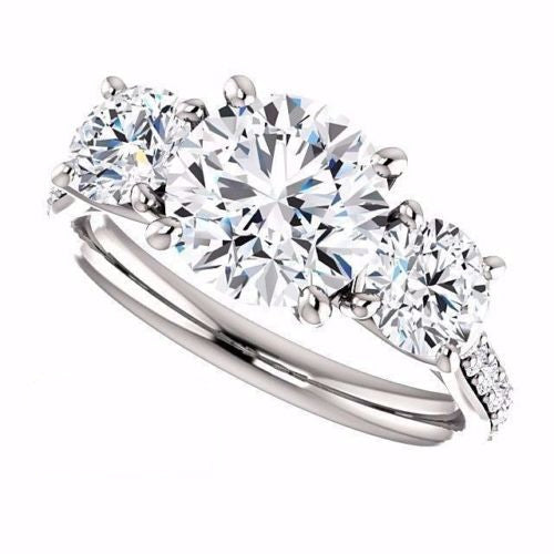 2 Carat Round CVD Lab Grown Diamond Engagement Ring for Women, Three Stone Anniversary Gifts, Christmas Gifts, Wedding Ring