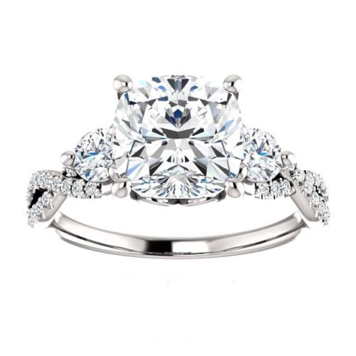 3.50 Carat Cushion Cut CVD Lab Grown Diamond Engagement Ring for Women, Three Stone Ring, Anniversary Gifts, Christmas Gifts, WEdding Ring