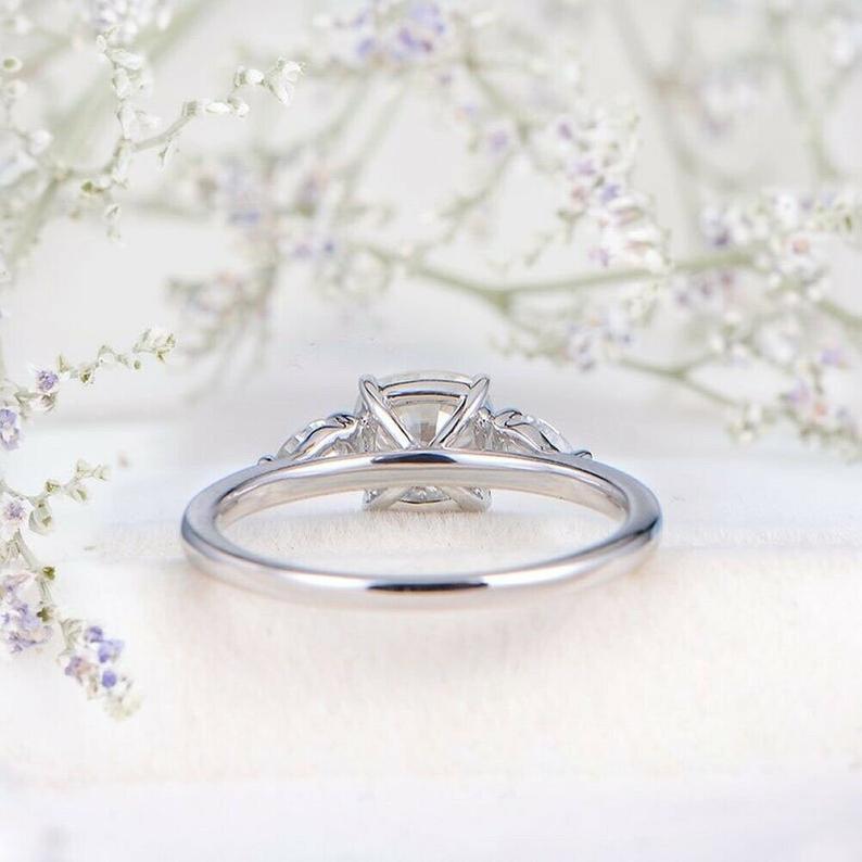 2.5 Carat Cushion Cut Diamond Engagement Ring for Women, Wedding Ring, Three Stone Ring