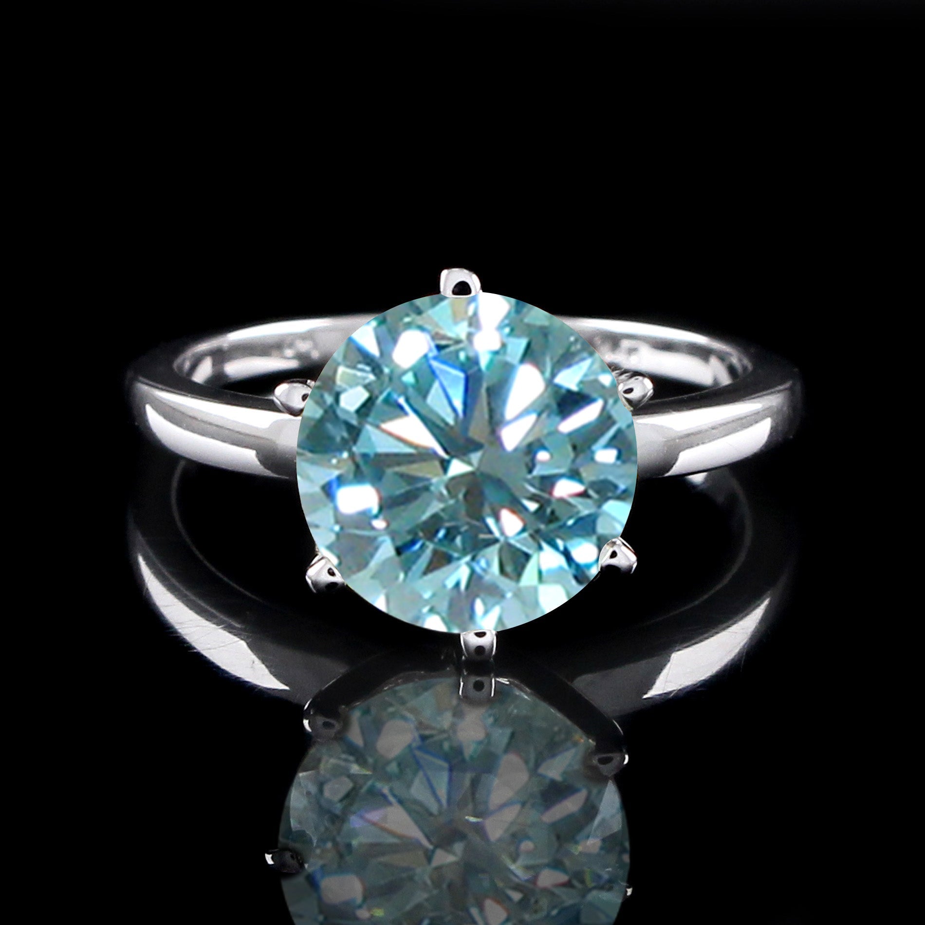 3 Carat Blue Round Cut Diamond Engagement Ring for Women, Wedding Ring